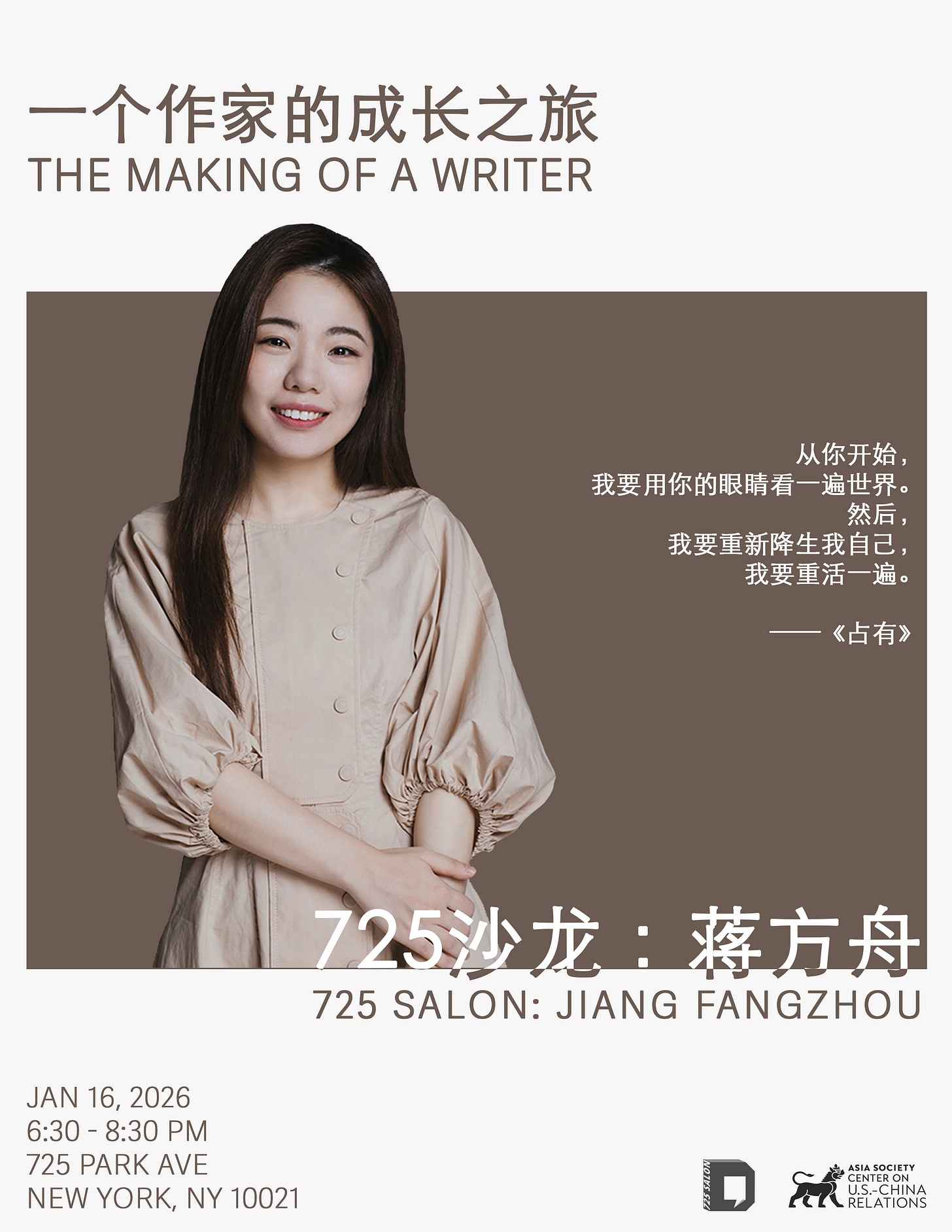 本周五1月16日,我将在纽约与中国作家蒋方舟对话。